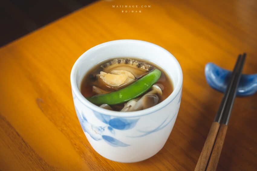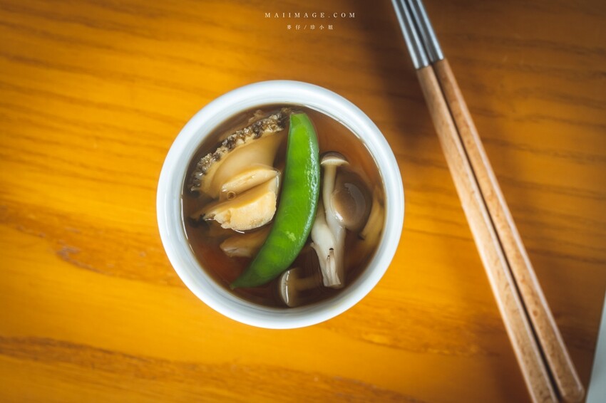整尾的鮮蝦處理得很好,雲彩凍是昆布湯底,很提蝦子的甜度。裡面有紫菜、枸杞、秋葵跟玉米筍。