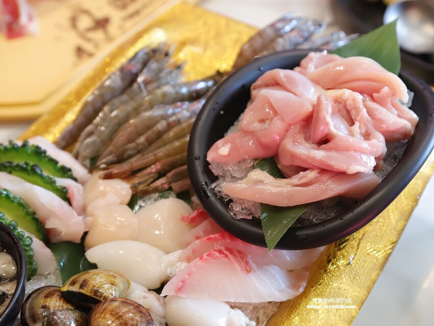 有新鮮的干貝及鯛魚肉片、巴沙魚片