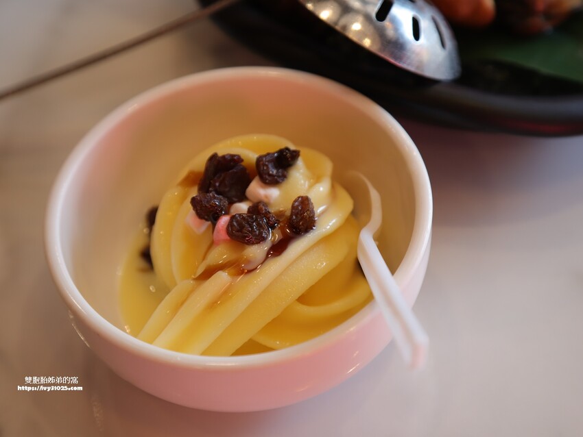 因為冰吃不多,所以用碗裝起來,再加點葡萄乾和棉花糖及黑糖搭配吃,肉多多真的肉很多以外,火鍋其他食材及飲料真的超多,難怪東港人都很愛來這邊用餐,沒有位子就預訂打包帶回家吃。