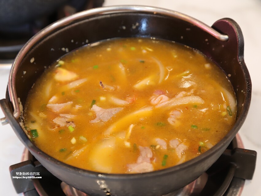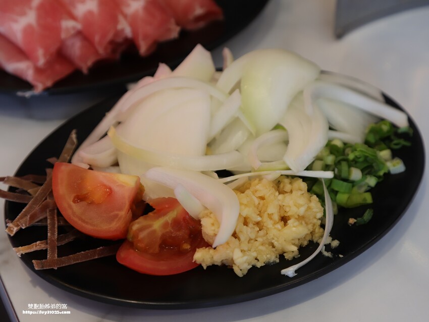 這次用餐火鍋湯底,我挑了爆炒招牌石頭鍋+胡椒豚骨鍋,爆炒招牌石頭鍋的湯底都要現點現準備現炒,肉品選擇梅花豬。