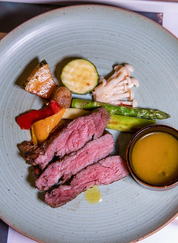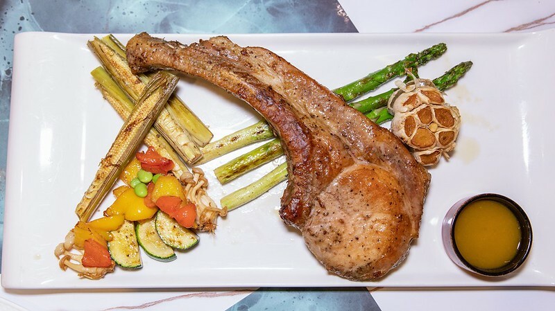 戰斧豬排佐烤時蔬,油焦香帶著不錯的肉甜,肉質軟嫩微帶滑順的咬勁,附上的醬汁帶點水果的解膩甜很是清爽。