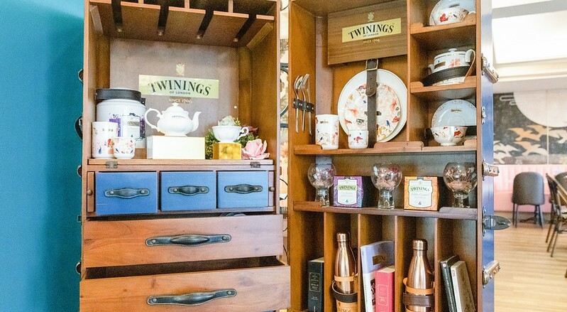 說是祕境下午茶改成祕境餐酒館,但更正確的說法是進化或是增加,不管是白天或是夜晚,還是可以在這點杯圓山飯店引以為傲的手沖咖啡,這次還特別跟有三百多年歷史,榮獲英國皇室認證的茶中精品「TWININGS」合作。是說這個TWININGS特別櫃也太美太奢華了吧。