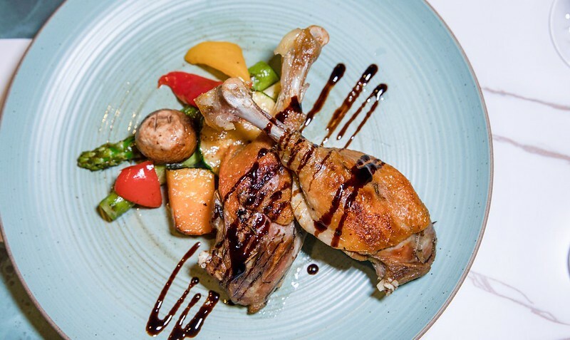油封鵝腿和德國豬腳都有不錯的水準演出,尤其是後者皮脆肉滑,中間的油質更是風味十足,配上酸菜和醬汁別有一番滋味。