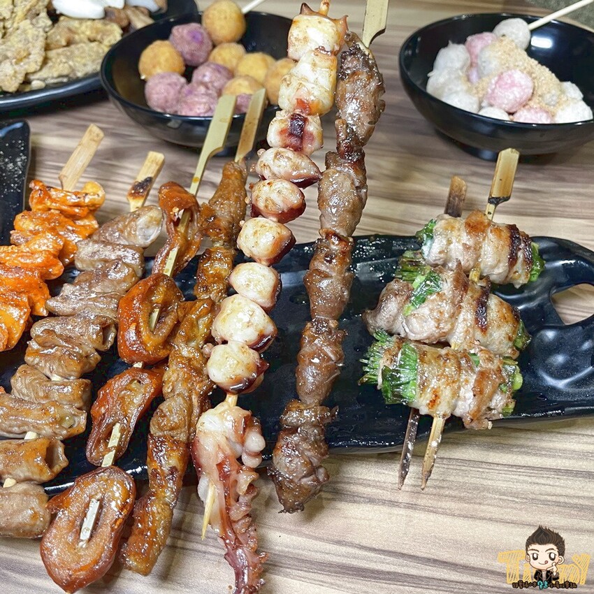 滿滿的肉串、蔬菜串種類很多,看色澤就知道很新鮮,像是肥腸串、松阪豬肉串這些都很推。
