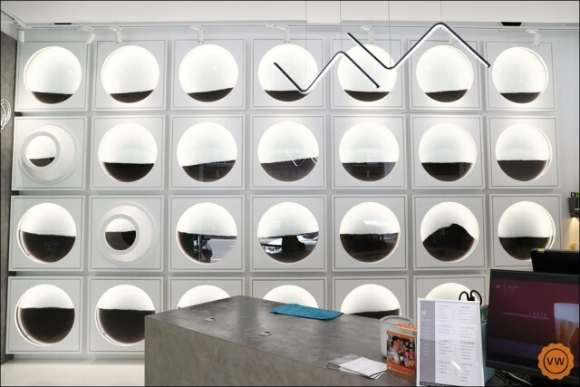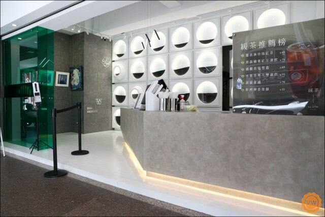 緩茶與一般城間看到的手搖飲料店很不一樣!櫃台後方是用茶葉製作而成的茶葉牆,右側是採用內縮式的櫃台,左側則是規劃出一個小小的微展覽空間,光是一踏入店內就讓人有股想要慢慢的氛圍。