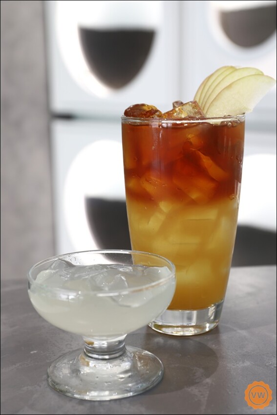 彷佛置身青森夏天的午後,紅玉紅茶的茶韻帶有淡淡的甜羅勒、薄荷巧克力、桂圓香氣,搭檔青森蘋果汁與緩茶自製手作青檸凍,再以新鮮蘋果片點綴,清透揚香的茶感與酸 Q 的檸檬凍完美結合,那是微風拂過綠草帶點酸甜的香氣,慵懶卻有著絲絲清甜的滋味。