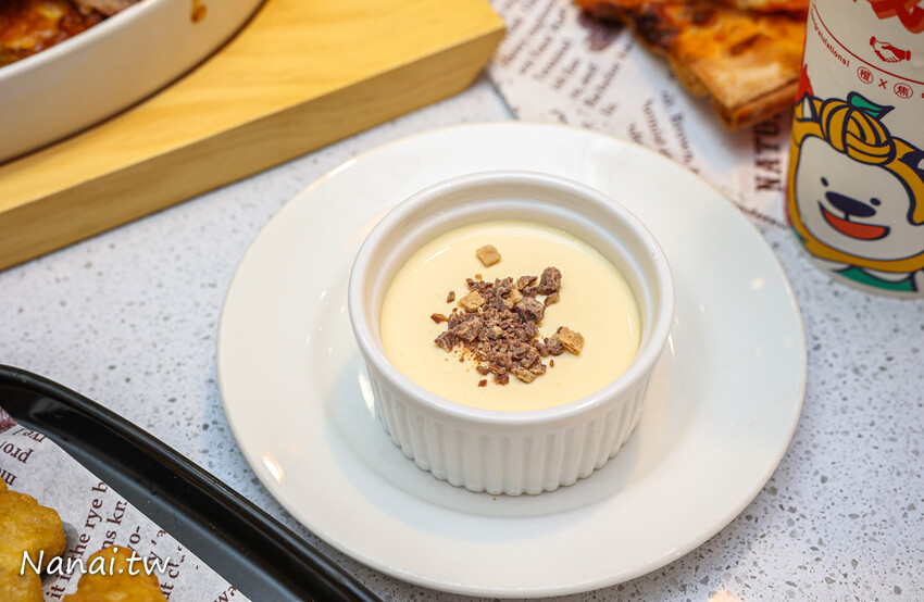 升級套餐真的很划算,原本法式經典布蕾一個要55元,再加65元飲料等於要花120元,現在只要+69元就可獲得兩樣美食,現省五十元,在怎麼省也要升等套餐!喜歡飯後來份甜點,所以我選擇法式經典布蕾,這道布蕾上有撒巧克力碎片增加層次口感,咬下時底部綿密又細緻,吃起來滑順又香甜,再配上巧克力碎片一起吃,多了一種豐富有趣的嚼感。