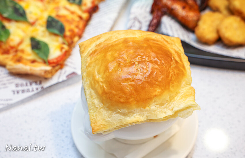 選擇B套餐有附奶香雞肉濃湯,亦可+20元升級酥皮濃湯,話說這款濃湯小編挺尬意,因為一次可以喝到兩種口感。接下來舀起喝第一口渾厚濃郁奶香滋味立刻在口中散開來,再尬上層層酥皮,以及不少雞肉與玉米粒,食材之間的層次在逐漸遞進迸發,組合出層出不窮風味,不僅分開喝好吃,就連酥皮浸泡在湯頭裡也很棒,酥皮吸收了濃湯精髓,這豐富口感卻變得更加精彩~