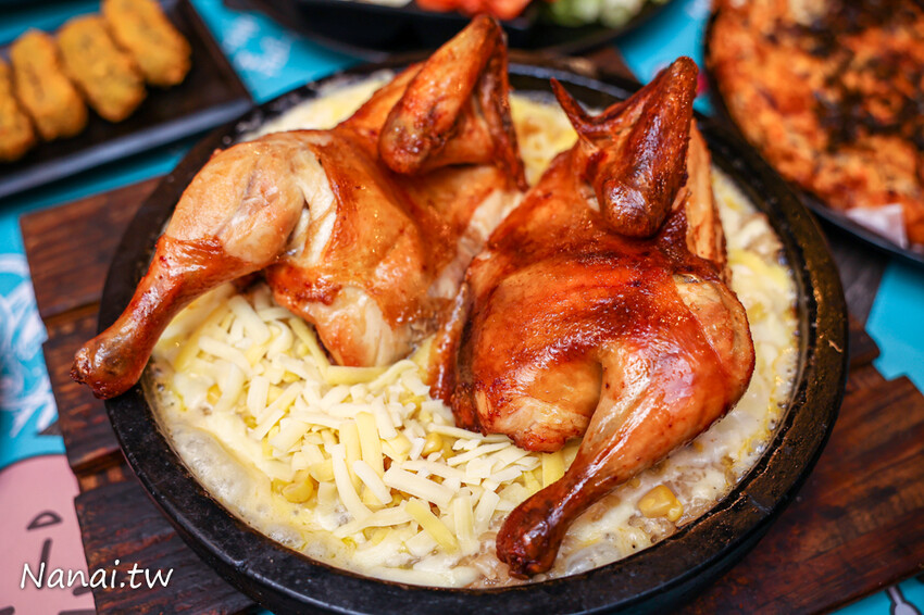 爆量的玉米起司炸出乃哩!這道未免也太浮誇,尤其是鑄鐵盤吱吱作響的鍋巴烤雞不斷地冒著泡,遠處就能聞到香噴噴滋味,然而最底層還舖爆量滿滿的義式起司與玉米,畫面實在太罪惡,光看口水都不知流到哪裡去~