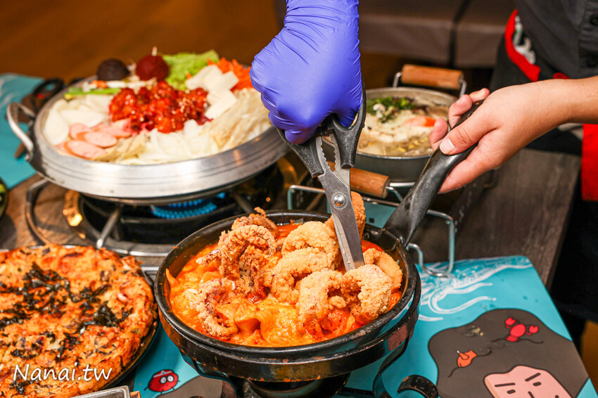 若有點起司魷魚年糕鍋,店員會隨桌幫忙分解,這點服務挺貼心。