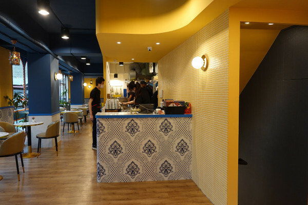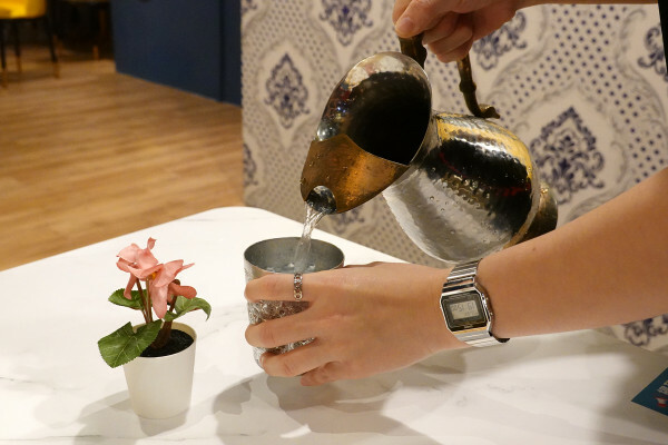 神燈搓一下的白色建築搭配土耳其藍拱門造型散發出迷人的中東風情,門口旁還擺了一盞金色的神燈,既吸睛又很呼應餐廳的名稱。