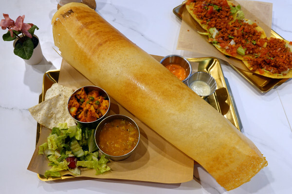 兩種米混合的米漿去磨製成的南印度薄餅,乍看之下雖然有點像可麗餅,但口感更酥脆而且吃起來是清甜的米香,咔滋、咔滋的薄餅越咬越香,單吃就很好吃,配風味獨特的醬料也會越吃越有味。