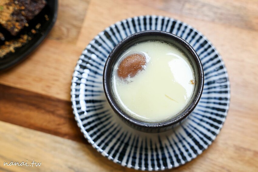 秦湯家的茶碗蒸是用雞湯和蛋下去熬煮,裏頭有蟹管肉、魚板、香菇、蛤仔等食材,勺起一匙入口,雞湯鮮味鎖在裏頭,口感谷溜滑順還吃的到餡料。
