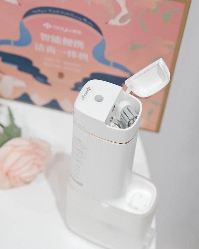 裡面包含主機*1、沖牙器頭*2、牙刷頭*2、充電線*1和說明書*1,內容很豐富呀!