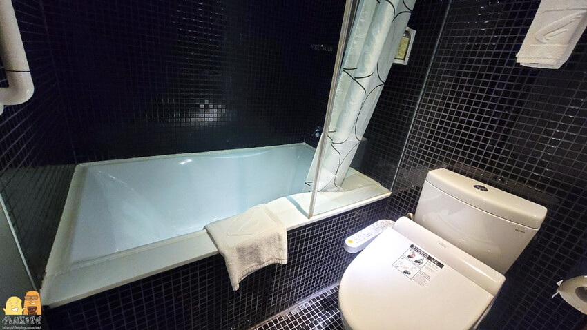 雖然浴缸沒有到很大,無法像汽車旅館那樣可以同時兩個人一起泡澡,但一個人來泡還蠻夠用的,就算是身高186公分的我來泡還能伸直腳輕鬆的泡在熱水裡