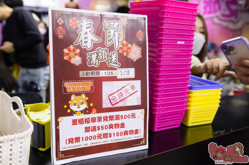 春節滿額送活動,從1/25一路到2/28,只要在櫃檯單筆兌換滿500元,就送50元夾物金,兌換1000元送150元,等於現賺啊~