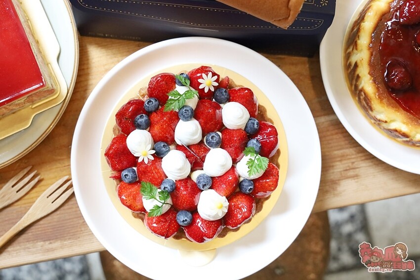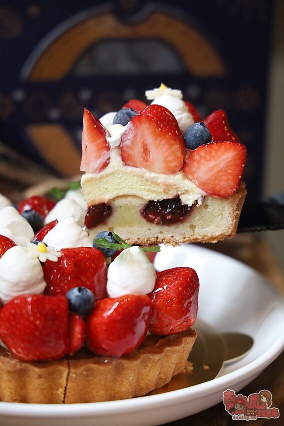 同樣使用品質好的超大草莓來裝飾上層,再搭配藍莓,日本中澤奶霜,不膩口的卡士達醬及自製的塔派餅皮,豪氣的直接雙手拿起來咀嚼這樣的口感及層次最過癮,咀嚼在嘴裡能吃到滿滿的層次感,濃郁的草莓香氣瞬間在嘴裡炸開,好好吃喔!