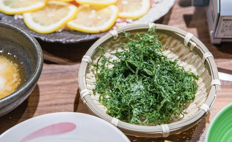アーサ,好像是,反正就是沖繩特有的藻類,正當我不知該直接吃還是丟下去煮時,服務人員仿佛看出我的掙扎,於是遠遠對我比了一個通通丟進鍋裡的動作...。嗯,就是海藻煮過的口感和味道,最多就是多了一點爽脆,還有比較沒有藻類特有的腥味,但不知道是不是因為曬過的關系。