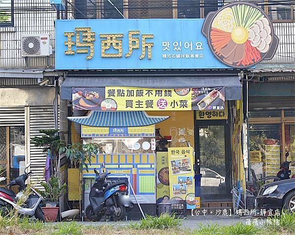 來到離『沙鹿休閒景觀步道』約5~8分鐘車程的⟪靜宜商圈⟫,在找尋路邊停車位時,蒨蒨:媽麻~這裡也有一家瑪西所耶!好想念上次吃石鍋拌飯裡頭的鍋巴!好脆、好好吃!