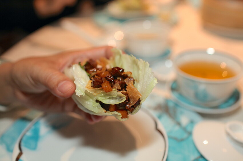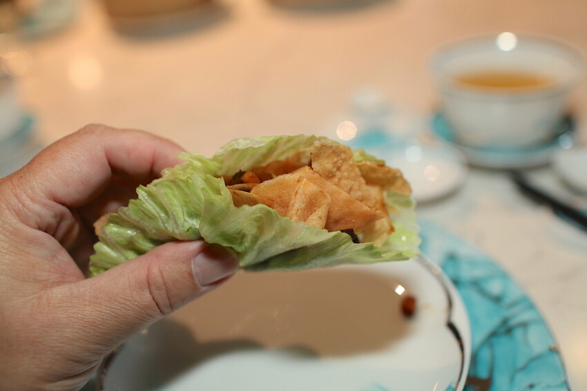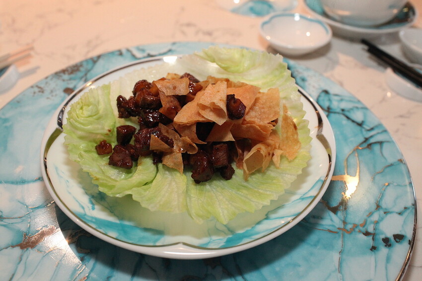 這松仁惹味炒鴨鬆據說很熱門一道料理,把鴨肉取下來然後醬燒與松子拌炒,竟然還搭配脆餅來一起享用。