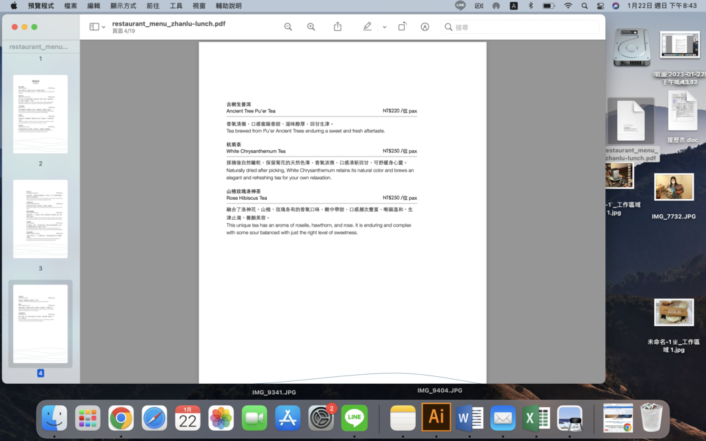 以下是從網路下載今天的菜單供顧客參考: