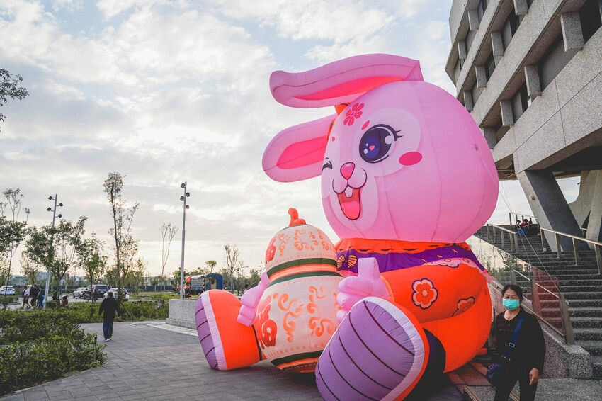 而為迎接農曆春節到來,引進5座10米高以上的大型兔子裝置藝術