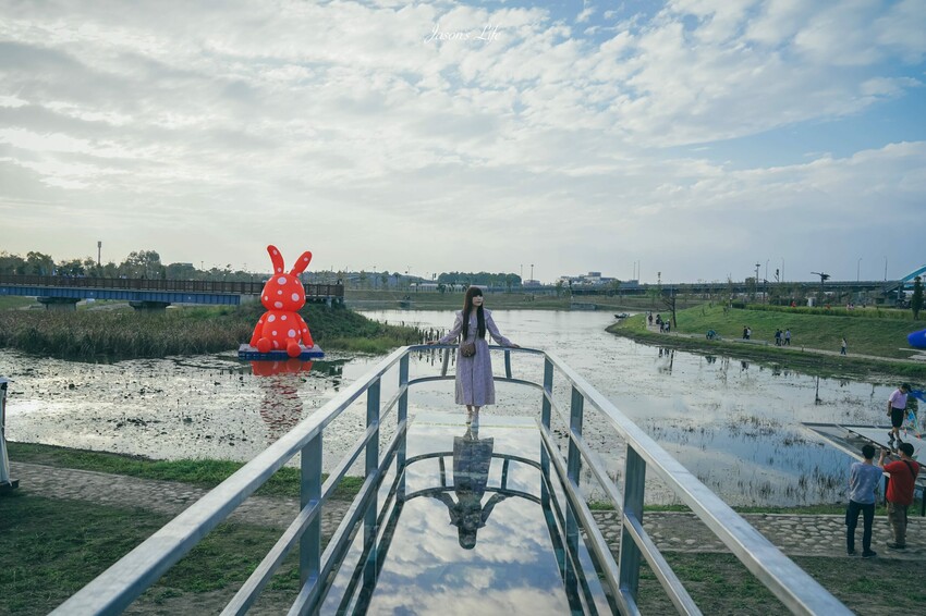 這裡最大的賣點就是到了傍晚時,夕陽餘暉照在滯洪池面上