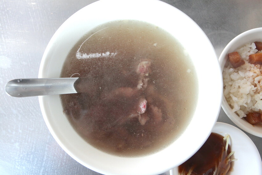 小高點牛肉湯150元(大)與肉燥飯10元。