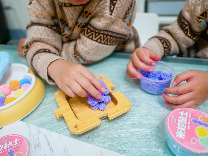 粒粒分明的黏土表面能有效促進統感知覺發展,在玩樂時除了可訓練手部肌肉外,更可在玩黏土的過程中幫助情緒穩定。