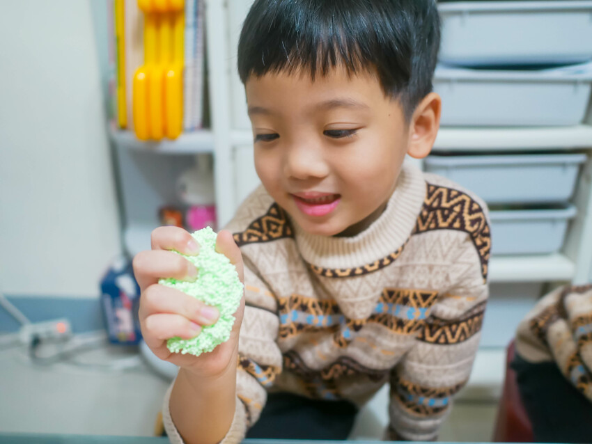再玩黏土的過成中,粒粒觸感能刺激孩子感官,刺激孩子大腦發展