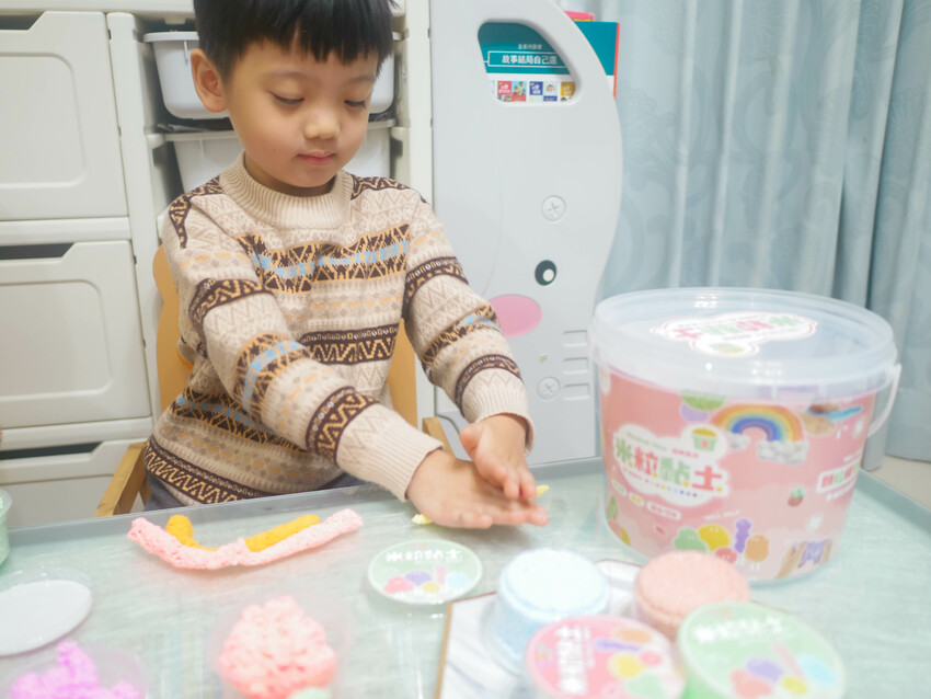 但自從入手這款米粒黏土後,孩子玩樂時間整個大大拉長了呢