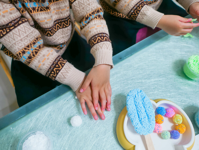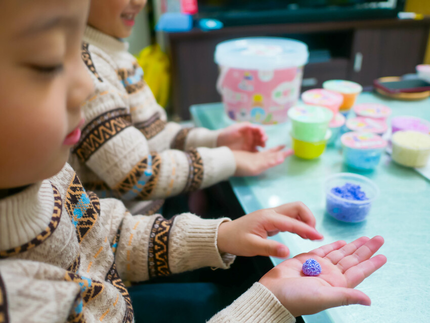 孩子在玩米粒黏土時,總能得到滿滿的成就感
