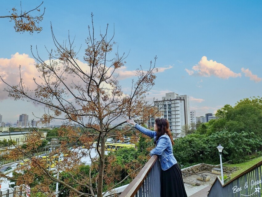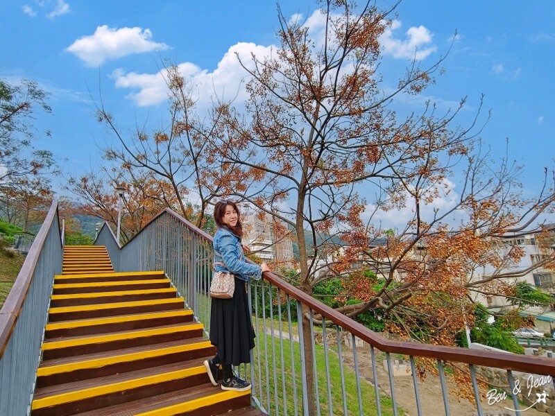 沿著階梯往上走,先是看見整排的苦楝樹,陽光照射下會有黃澄澄像是金子的感覺呢,還滿有意境的