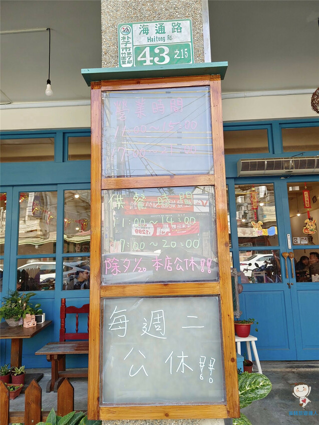 店門口中間的柱子除了門牌號碼,還有寫明營業時間