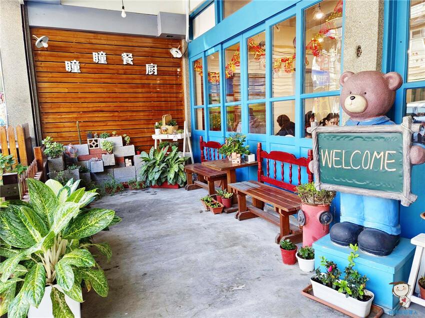 藍底白字的招牌把瞳瞳餐廚四個大字標示得很清楚
