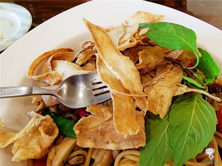 沒想到炸得脆脆的牛蒡薄片和微辣的義大利麵竟能撞擊出味蕾的新火花