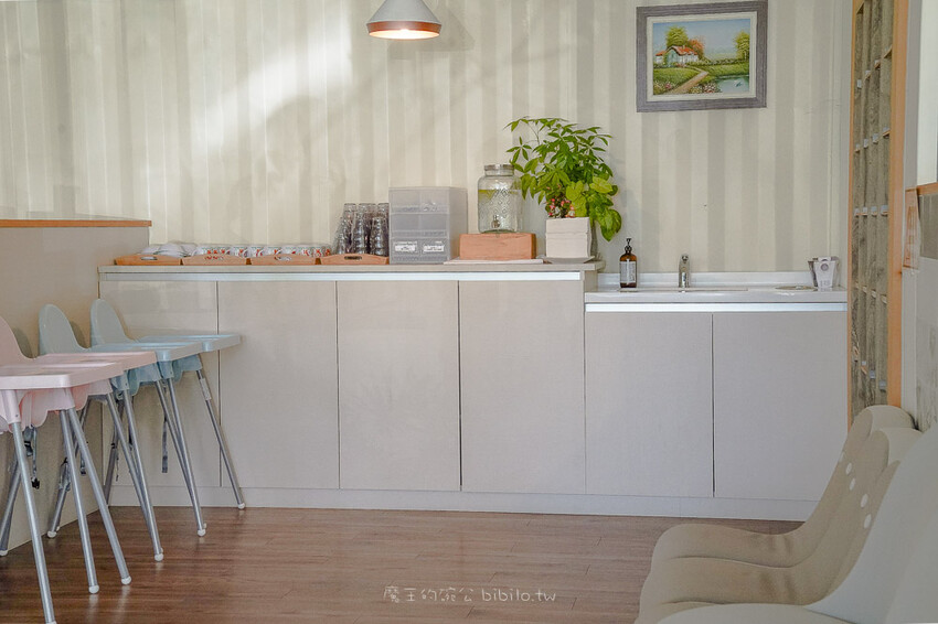 厚冶Bakery&Cafe採半自助式服務,所以兒童餐具,水杯到用餐完畢餐盤皆由消費者自行處理,這裡也有提供兒童座椅,使用完畢也一樣要物歸原位。