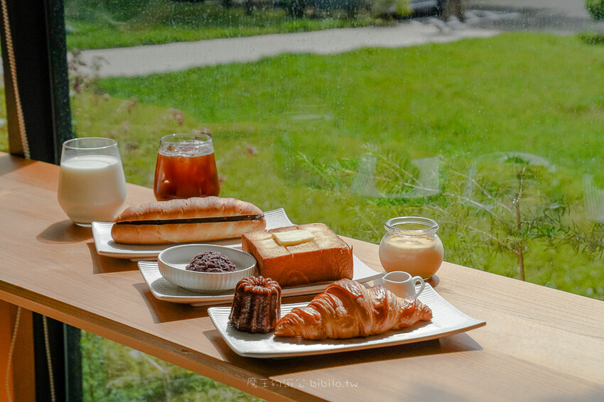 光是烤麵包的機器是原裝進口的火山岩窯烤箱,麵粉則是來自日本熊本莫魯道石臼粉,當天還有喝到讓我非常喜歡的北海道函館直送的牛奶,加上環境充滿綠意,採光極佳,不誇張,馬上發訊息給愛吃麵包的朋友們,