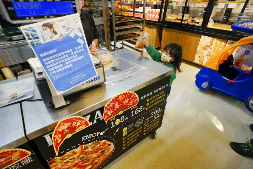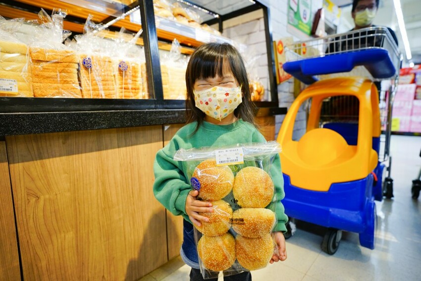 尤其現在小孩特別愛吃麵包,就更有理由來買藍色小圓圈標章的家樂福麵包~