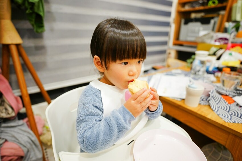 睡前小點心,又吵著要吃今天買的麵包,芝士口味的麻糬麵包是我跟孩子的最愛~