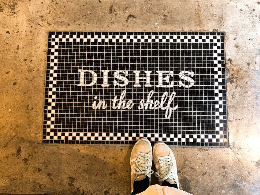 【Meals】二樓Meals的門牌或是地磚,底下都寫了一行one soup &three,指的是三菜一湯。店內堅持使用當令食材來研發菜單,每個月定期推出兩款餐點。內容除了主菜及當季炊飯外,還會有三道時令配菜及特製湯品,並附上手工冰淇淋。