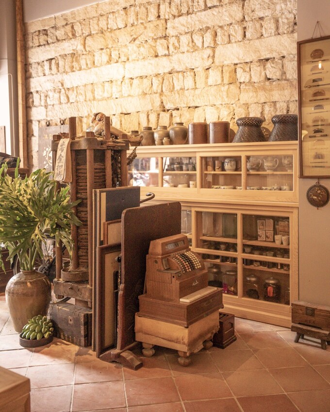 櫥櫃等等靠近一聞是檜木的香氣,空間有滿滿古董