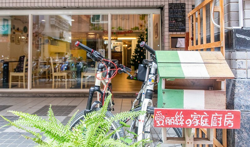 我在猜可能沒招牌,店門口也沒太多裝潢,所以就一直過而不見,但印象中之前這裡是一間中菜小館子?仔細看,這個像信箱的招牌「愛麗絲的家庭廚房」以義大利的國旗顏色代表義式料理。是說,板橋江子翠最近有兩種餐廳如雨後春筍,一是居酒屋,二便是巷子裡的小義式餐廳。