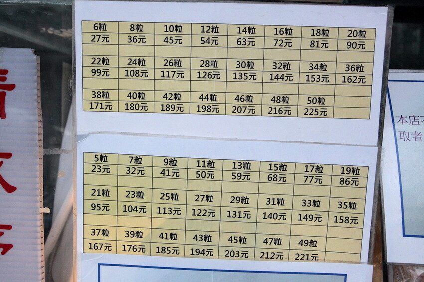 攤位上有標示買幾粒對應定價多少錢,可見生意很好方便顧客購買速度。
