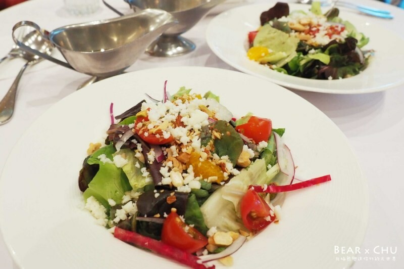 阿瑪迪斯咖啡館套餐搭配的主廚沙拉這天口味是堅果沙拉,滿滿的多種生菜搭上一些小番茄等水果增添色彩與風味,上頭灑上了不少的堅果碎與起司,酸甜風味的沙拉醬汁淋多淋少自己決定,吃起來清脆清爽之外,堅果與起司給得量不少,滿嘴都是迷人香氣。