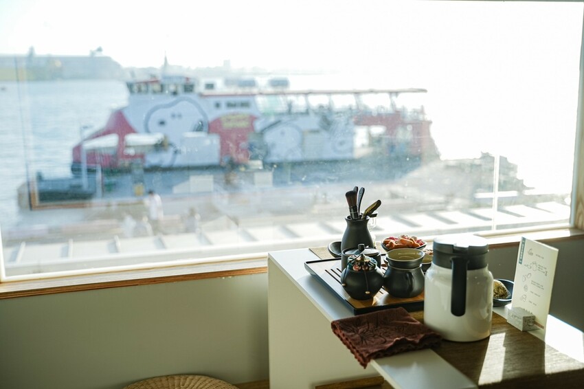 ▲ 享受著台灣茶的同時 還能看到最新的史努比渡輪 超級可愛😍