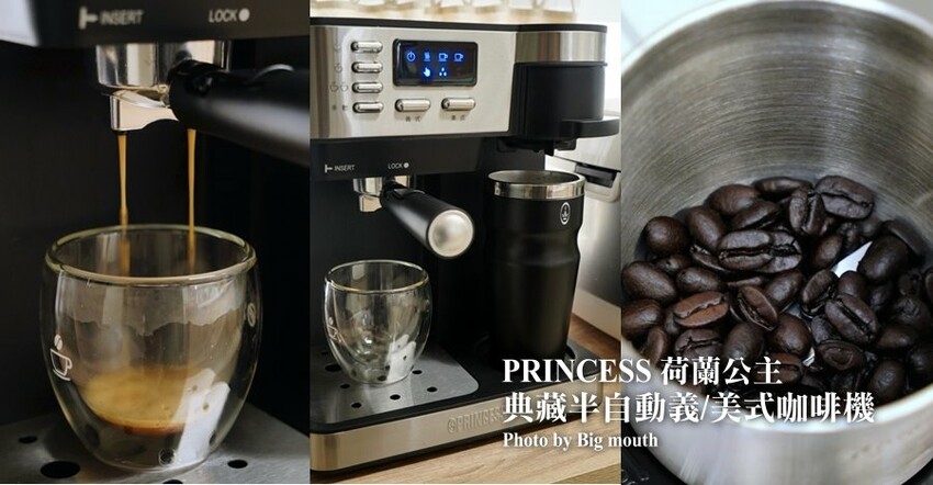 有了這台「PRINCESS 荷蘭公主典藏半自動義/美式咖啡機」,家裡就是你的咖啡館!大口是咖啡愛好者,每天都要來上一杯才有醒來的感覺(笑)~一開始大口使用的是全自動咖啡機,雖然操作方便簡單但就是少了一點樂趣,才弄了這台半自動咖啡機來玩玩!「PRINCESS 荷蘭公主典藏半自動義/美式咖啡機」從外型就很講究,畢竟每天都要使用,看到就覺得心情好;再者是它可以一機多用,不管是美式、義式咖啡甚至花茶都能一鍵搞定,還有附蒸氣管可以打奶泡,想喝什麼都可以自己來,每天早上光是煮咖啡都覺得非常有變化,生活也變得有趣起來;唯一要注意的是這台沒有磨豆功能,所以我們搭配「PRINCESS 不鏽鋼咖啡磨豆機」一起使用就解決了!大口覺得這台「PRINCESS 荷蘭公主典藏半自動義/美式咖啡機」有幾個優勢,先幫大家整理一下重點: