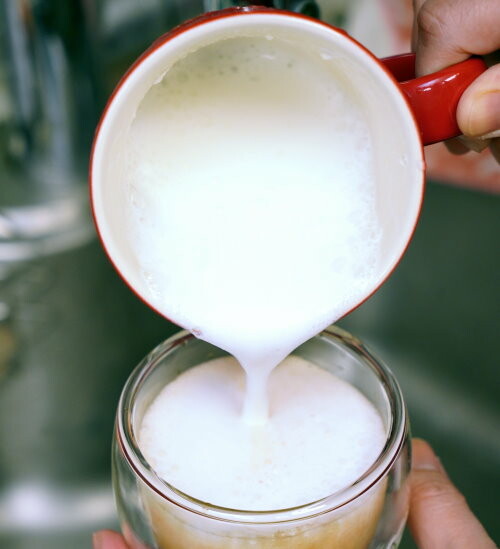 ▼打好的奶泡直接倒入濃縮咖啡即可,看起來也太專業了~如果會拉花就更完美了(笑)!