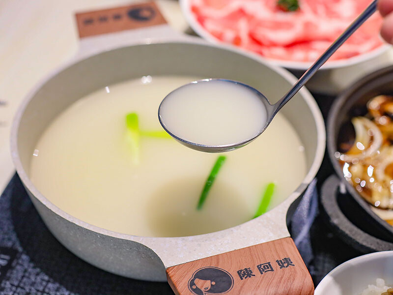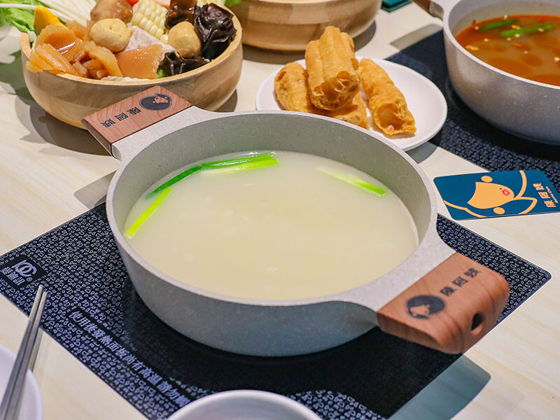 湯底是一人一鍋,招牌是慢燉雞湯湯頭,以大量雞骨與蔬菜慢火熬煮的雞白湯郁香順滑,溫潤甘甜,與北海道昆布並列招牌且不加價相當划算!