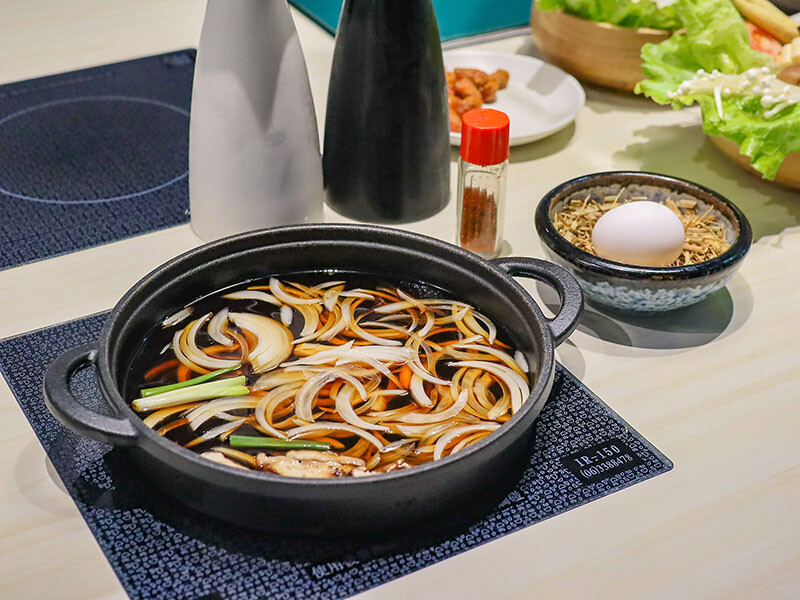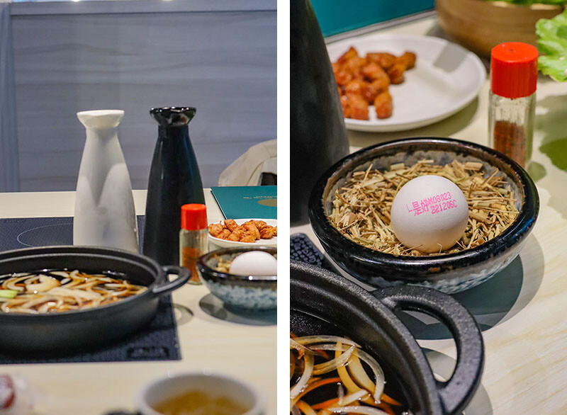 豪華的單人套餐,選了日式壽喜燒涮肉吃法,純釀醬油加入洋蔥熬煮,比例搭配相當得宜,涮上肉品不死甜,肉片川燙過沾著生食級雞蛋佐食,熱度讓蛋液變成蛋花,襯托出肉品於口的鮮嫩度。